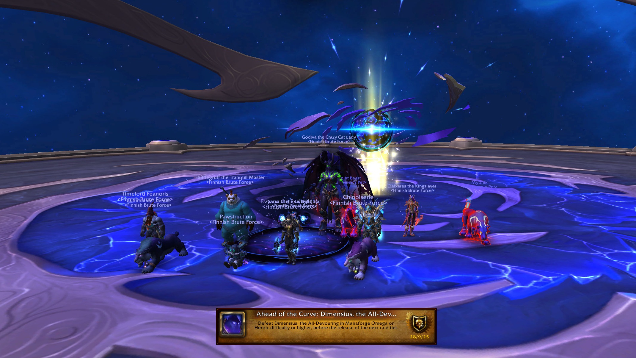 Like I predicted in my previous post, after the realm first Fyrakk HC kill we haven't been very active on the raiding field, but we are not dead you hear! As soon as the new content comes out, we will be there brute forcing our way to the many vistories again! So right now we're saying “Baibaiiii!” to Dragonflight and “Helloo there!” to The War within. Stay tuned!